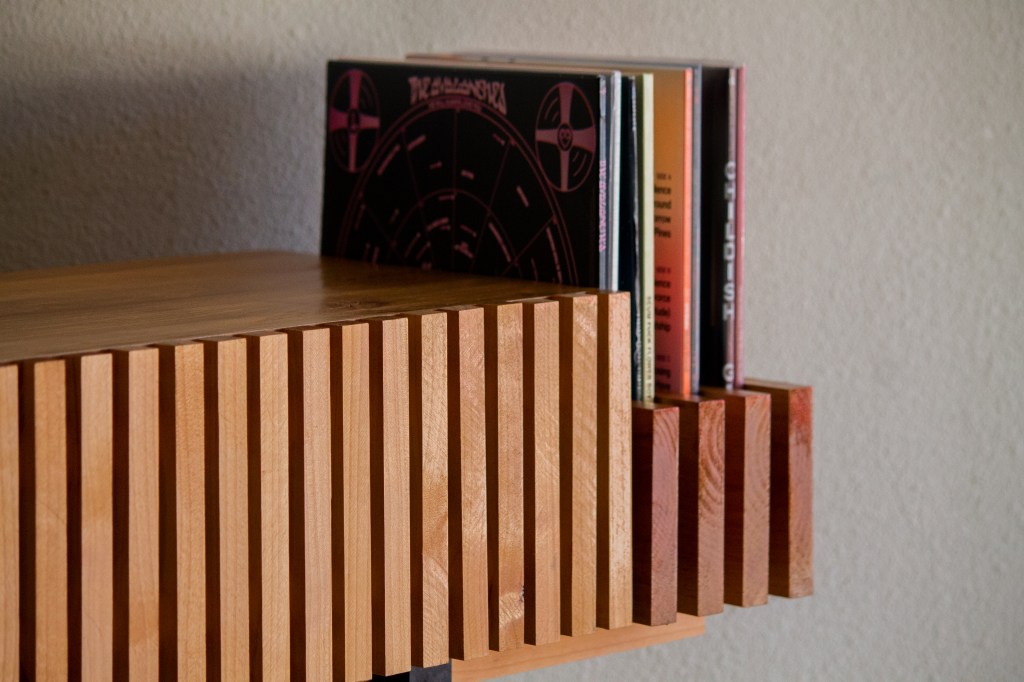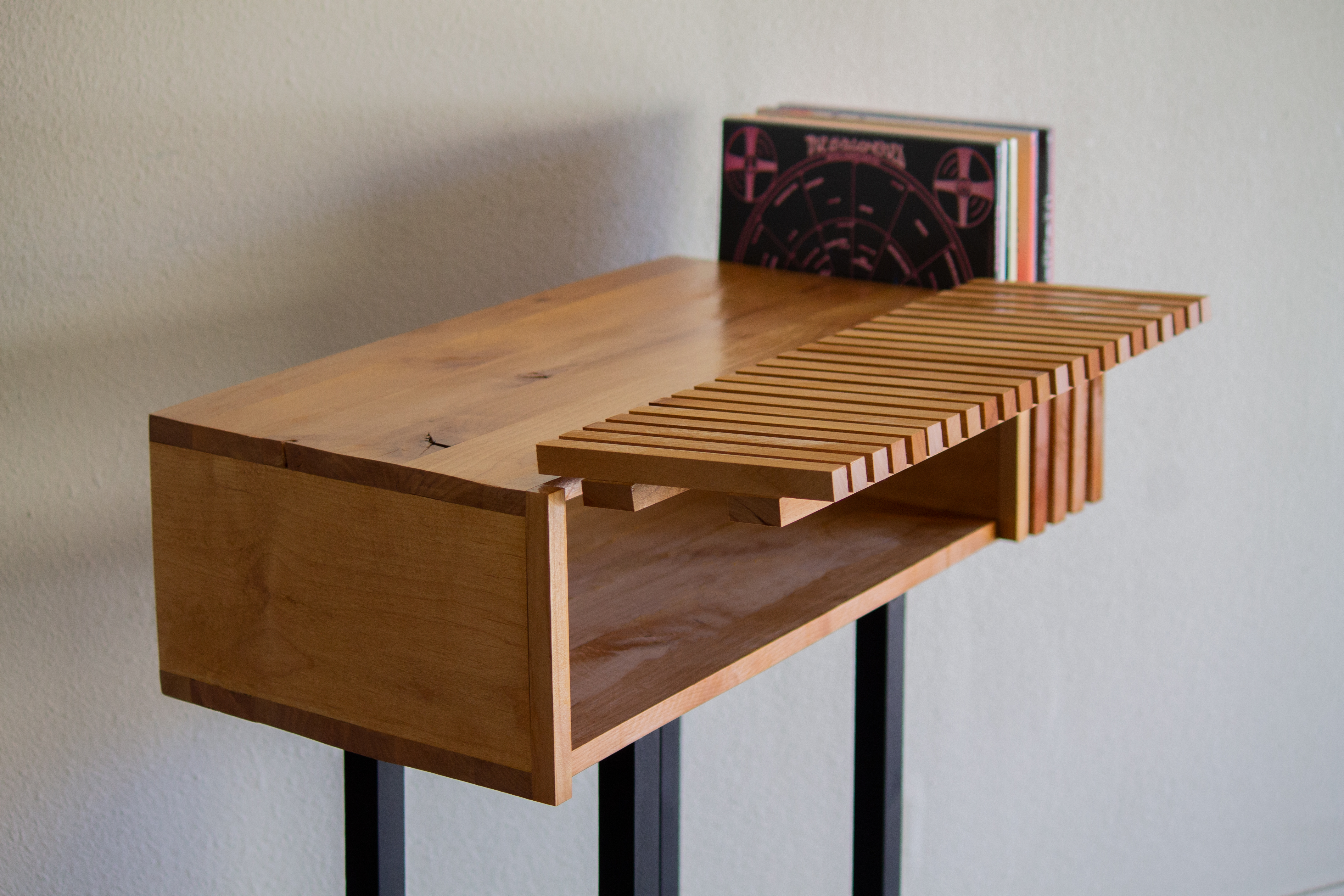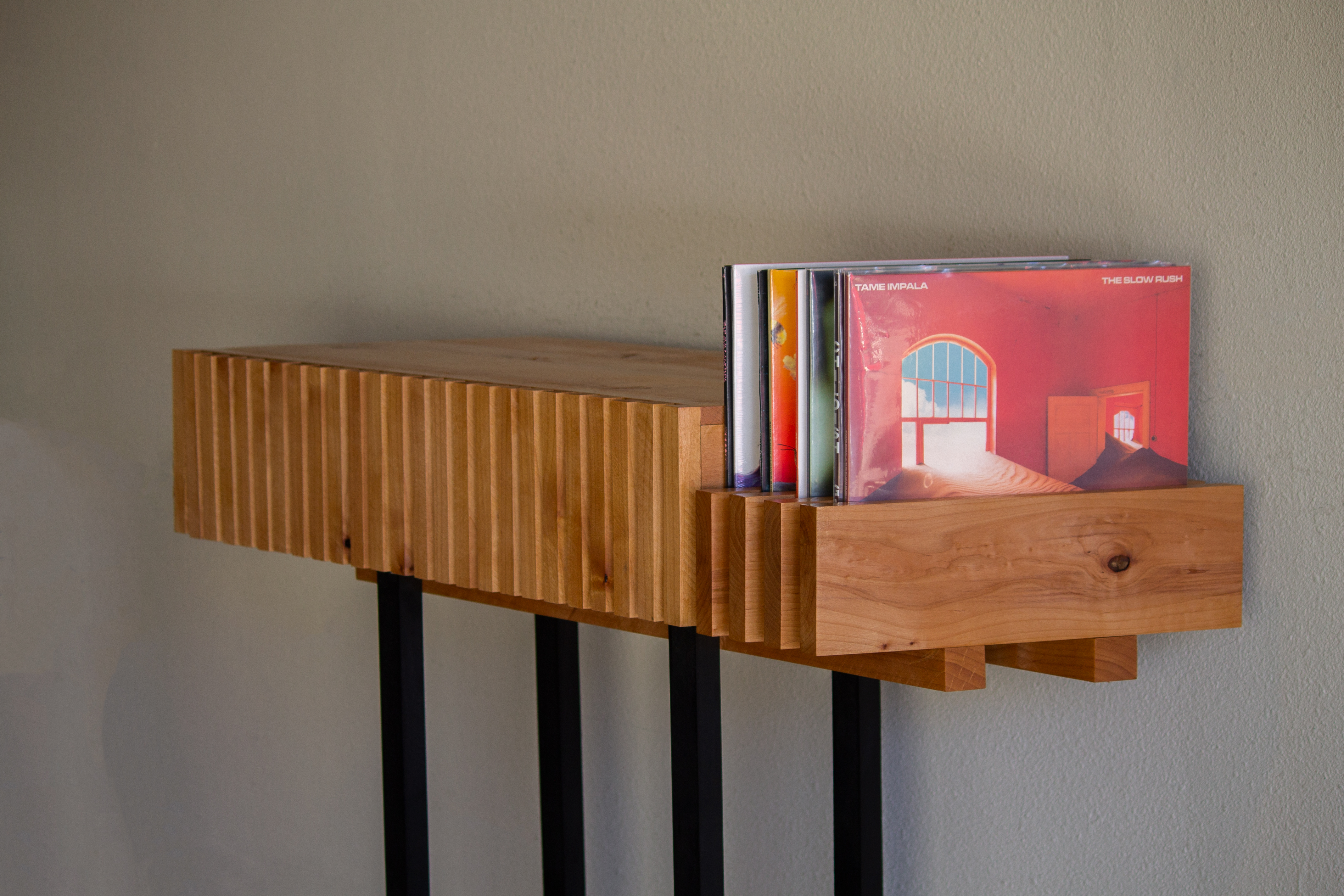 The Mason Record Stand was purpose built to display the artwork of vinyl records. This was achieved with its most notable design feature, the vertical slats which display the records and celebrate the artwork on them in a unique way. The slatted design continues to the face of the cabinet, further giving the piece a strikingly modern tectonic quality.