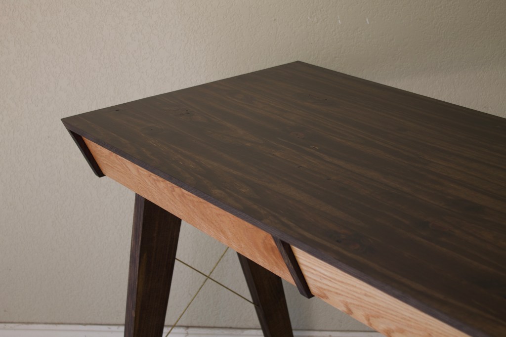 The characteristic angles across the desk’s profile contribute to a bold, yet lightweight appearance.